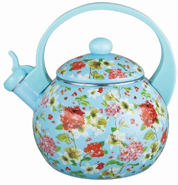 Эмалированный чайник со свистком Объем: 2,5л Носик со свистком и защитным кольцом Удобная ручка, не нагревается 3-х слойное внутреннее и внешнее эмалированое покрытие Неповсторимость дизайна Пригодность для посудомоечной машины Неповторимость узора