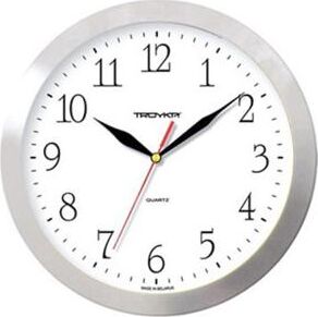 Категория: настенные, Тип механизма: кварцевый, Материал корпуса: пластик, Точный размер корпуса: 290х290х35 мм, Форма корпуса: круглые, Цвет корпуса: серебристый, Цвет циферблата: белый, Циферблат: стрелочный, Цифры: арабские, Ход: плавный.