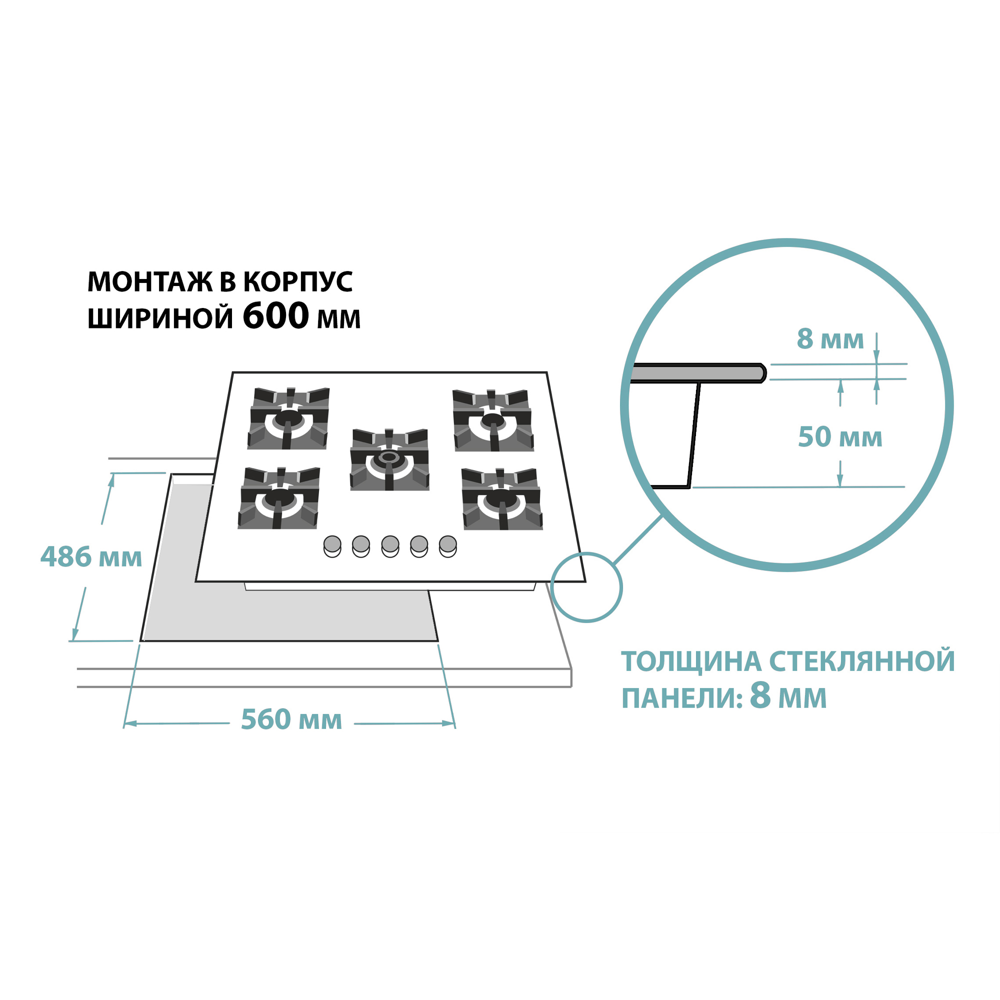 - Размеры монтажного проема, ШхГ, см 56 х 48,6