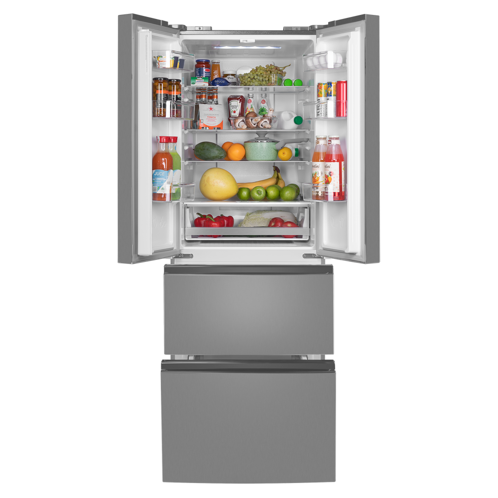 Холодильники с «французской дверцей» отличаются большой вместительностью и оригинальным дизайном. Выдвижные ящики морозильника превосходно удерживают холод и позволяют лучше разглядеть содержимое, чем распашные дверцы.