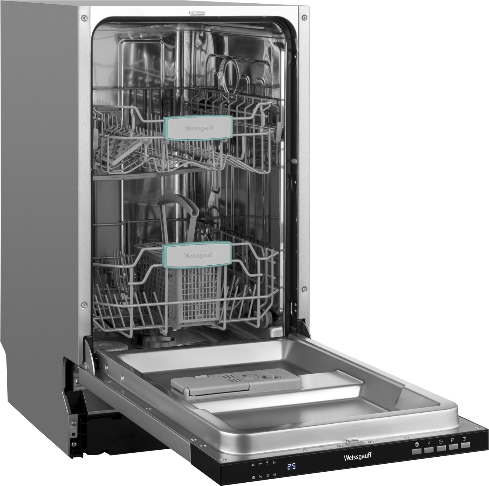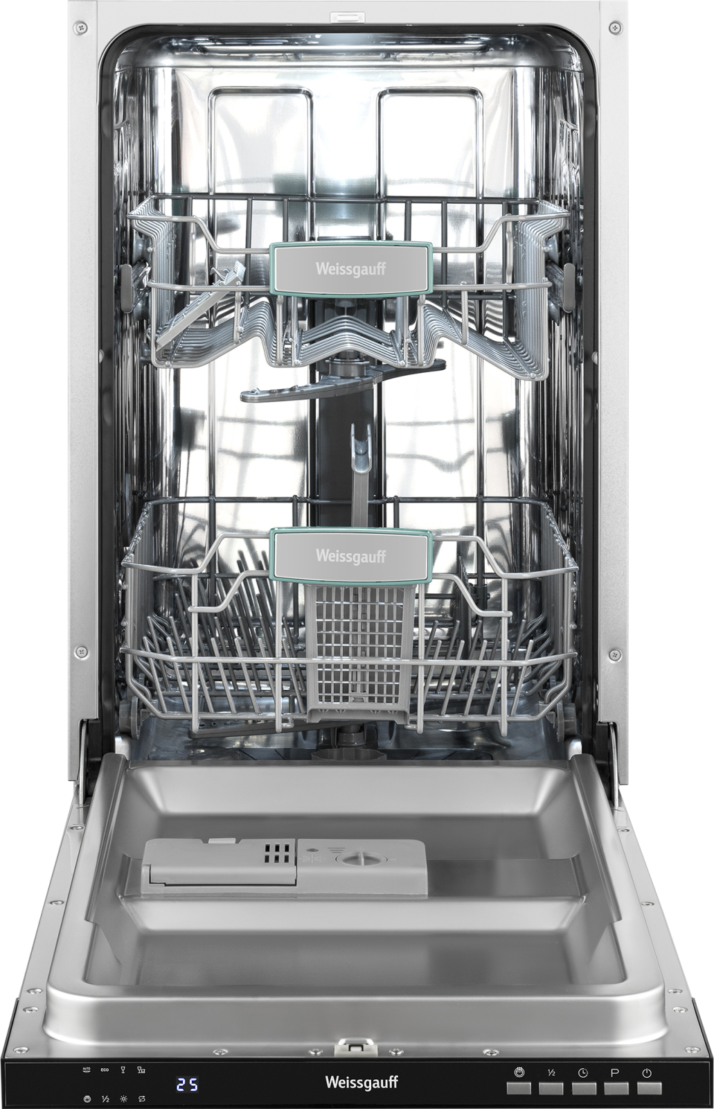 Компактная и экономичная посудомоечная машина Weissgauff обладает всеми необходимыми функциями для идеального результата после каждого рабочего цикла загрузки. Луч на полу дополнит прекрасный набор возможностей этой модели. 2 уровня разбрызгивателей воды S-образной формы обеспечивают наилучшее качество мытья, а встроенная подсветка не только позволит видеть сразу весь объем загруженной посуды, но и добавит эстетики, присоединяющей свои нотки красоты в общий дизайн вашей кухни.