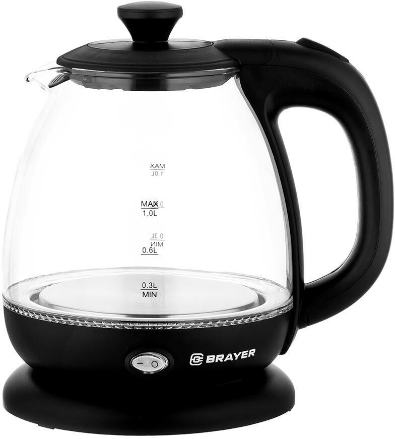Максимальная мощность 1100 Вт Максимальный объем 1 литр Корпус из высокопрочного термостойкого стекла Внутренняя подсветка Автоотключение при закипании воды Отключение при отсутствии воды Моющийся фильтр Противоскользящее основание Электропитание 220-240 В, ~50-60 Гц