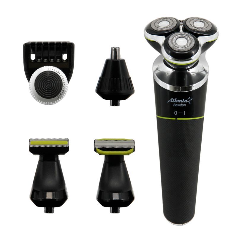 ATLANTA ATH-6926 (BLACK) Набор для стрижки и ухода Li-ion аккумулятор 3,7 В 500 мА/ч Насадка бритва с тремя двойными плавающими головками Насадка триммер для бороды и усов Насадка триммер для ухода за телом Насадка триммер для стрижки в носу и ушах Питание от аккумулятора и от кабеля USB Все насадки можно промывать в воде, степень защиты IPX5 Время зарядки 2 часа Время работы 1 час Подставка для всего набора