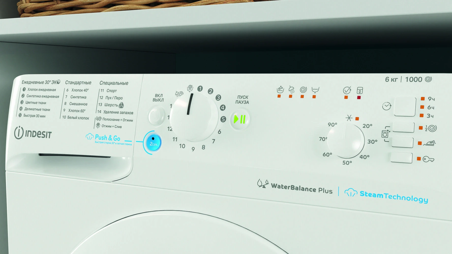 Кроме того, в стиральной машине BWSB 61051 WWV RU предусмотрен ряд дополнительных функций. Например, функция Push&Go Steam* позволит запустить ежедневный цикл с обработкой паром одним нажатием кнопки. А умный датчик Water Balance Plus**, автоматически настраивает расход воды с учетом уровня загрузки.