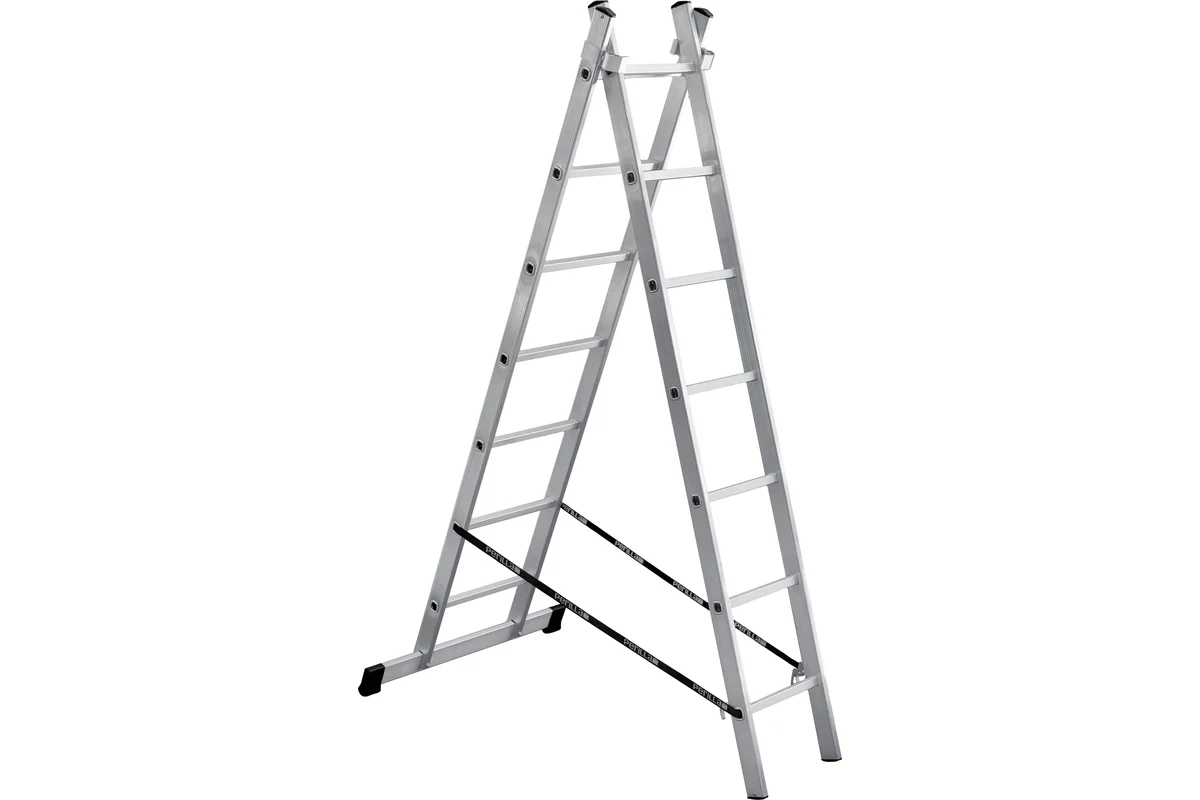 2-секционная лестница UFUK 2×7 ступеней 411207 предназначена для выполнения строительных, ремонтных, отделочных или иных видов работ, когда необходимо произвести какие-либо действия на высоте.Изготовлена из алюминиевого сплава и обладает достаточной прочностью.