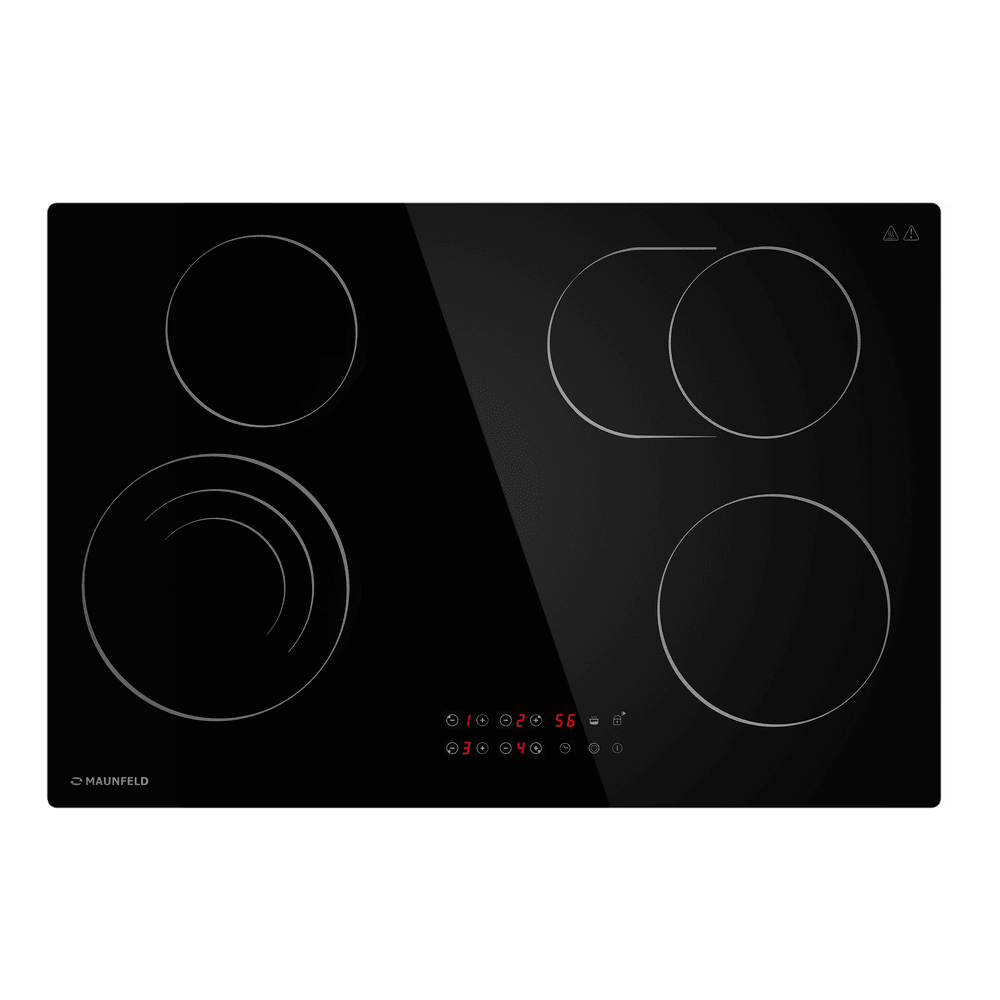 Стильная электрическая встраиваемая варочная панель шириной 77 см выполнена из ударопрочной стеклокерамики черного цвета. Благодаря идеальной гладкости и высокой износостойкости она легко очищается.